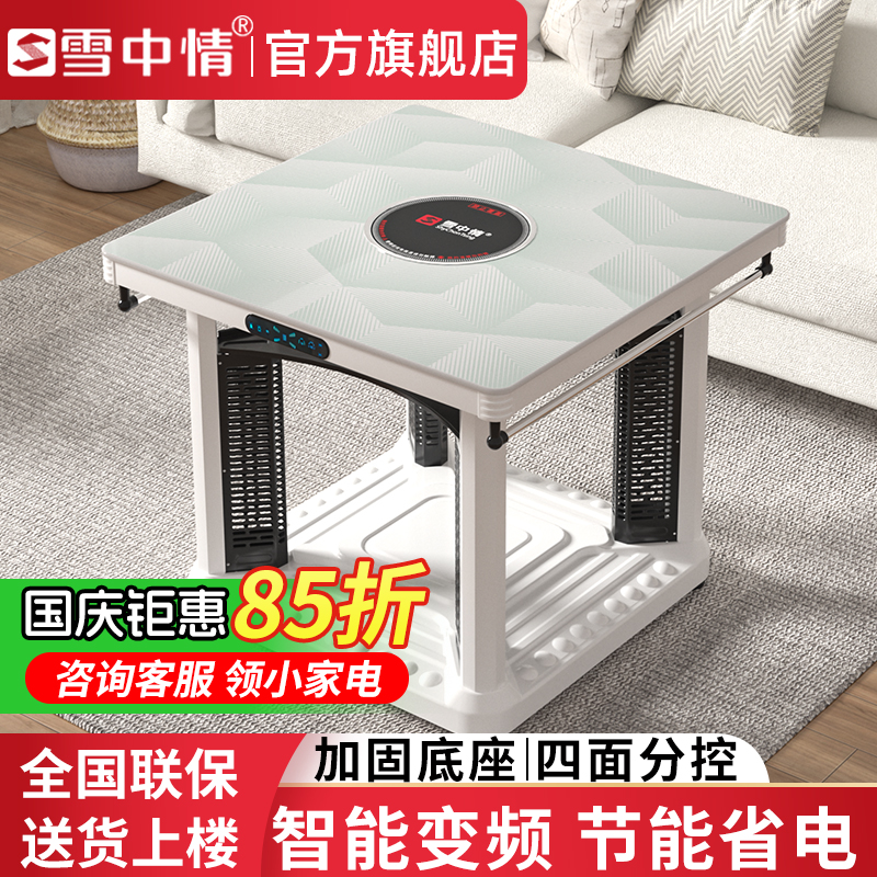 雪中情电暖桌电暖炉家用多功能取暖桌2025新款烤火桌电烤桌正方形客厅电炉电暖炉电烤炉小暖阳白色65*65