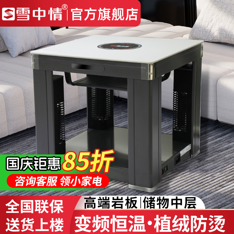 雪中情电暖桌正方形取暖桌电炉家用电烤桌电暖炉多功能电炉桌烤火桌子节能电烤炉取暖电热桌烤火炉取暖器 墨石白80*80*69