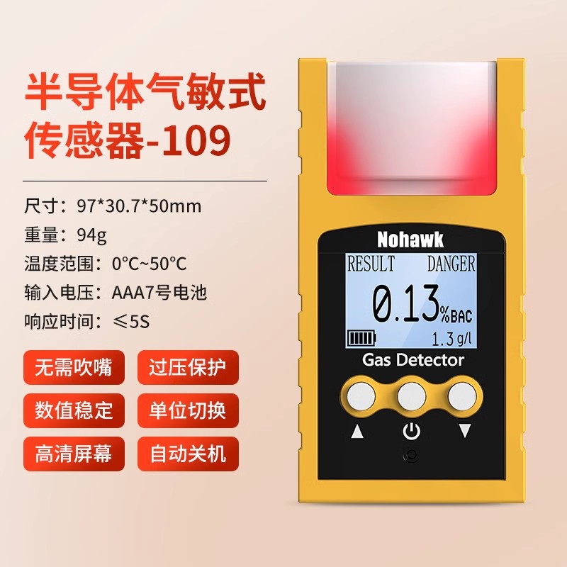 酒精检测仪吹气式酒驾专用测量仪高精度测酒器酒后测试仪测隔夜酒 非接触式【声光双重报警/高灵敏探头】109