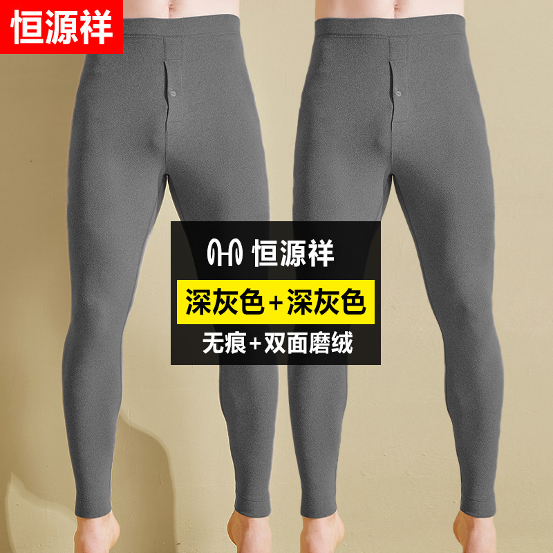 恒源祥秋裤男士阳离子薄款37度恒温双面磨绒保暖裤衬裤修身打底裤_2 185/3XL FK/【浅灰】/抗菌/无痕/恒温