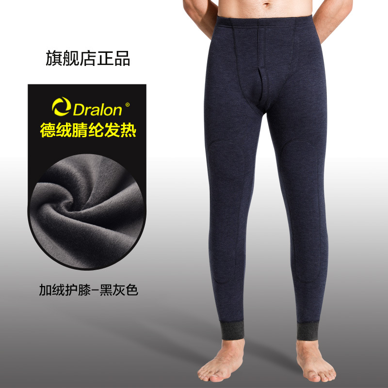 恒源祥保暖裤男加绒加厚打底裤德绒发热纤维棉裤男士加长护膝秋裤_1 165/M 黑灰色