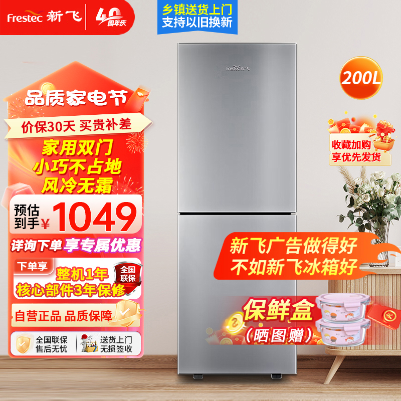 苏宁**真快,隔天就到,顺丰小哥服务很好,还搬上楼,新飞这款冰箱质量很好,好评