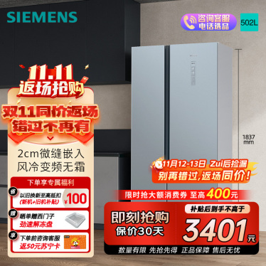 [超薄嵌入]SIEMENS 西门子502L风冷无霜纤薄对开门冰箱BCD-502W KX50NA43TI