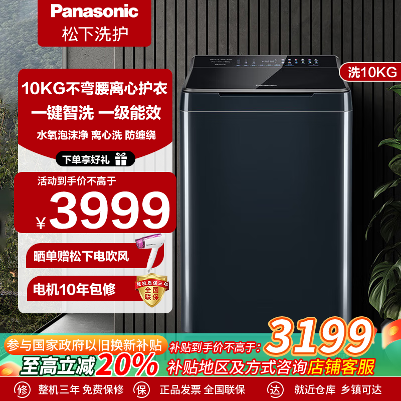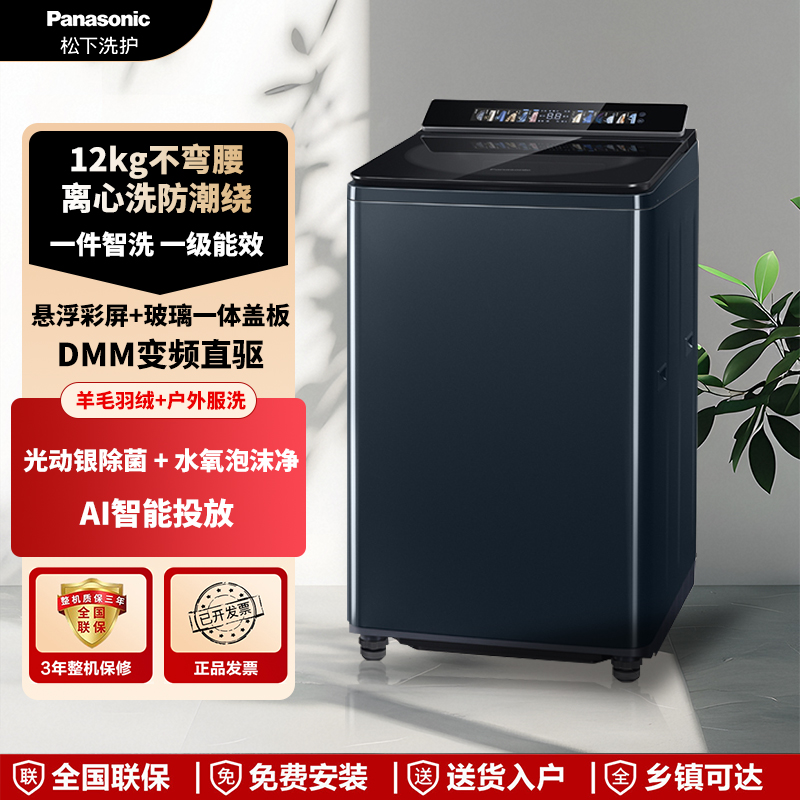 松下FW120是一款定位高端的波轮洗烘一体机,其核心优势集中在大容量洗烘、护衣黑科技和静音节能三大维度,适合追求高效洁净与衣物护理的中高端家庭用户。
