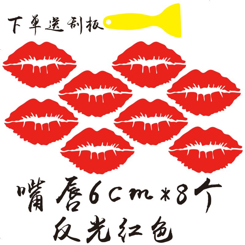 专用于大众凌渡高尔夫帕萨特迈腾灯眉汽车改装个性引擎盖装饰贴纸 嘴唇8个【刮板】