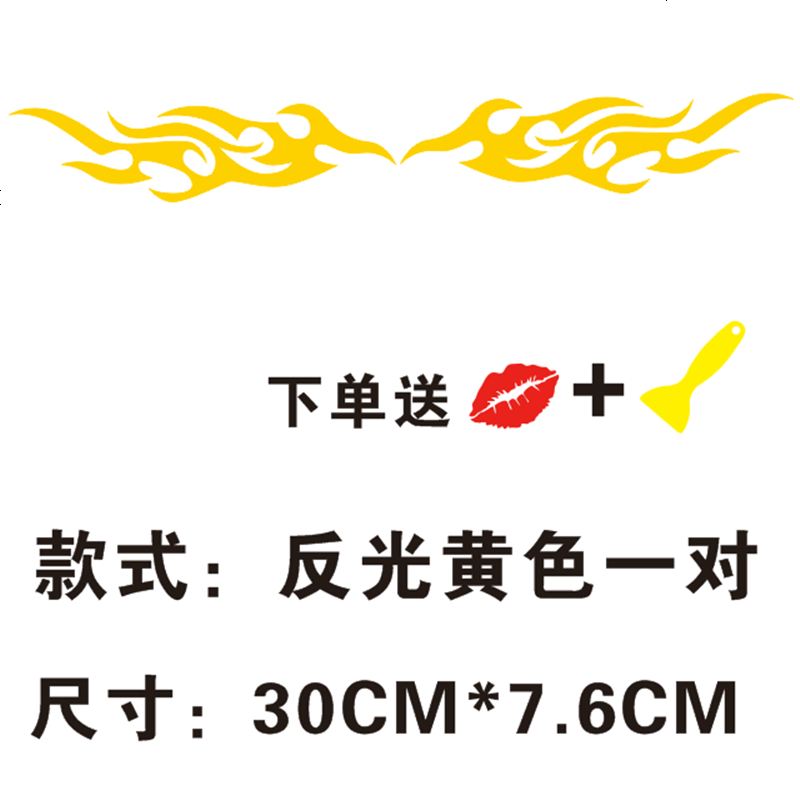 汽车火焰车贴保杠划痕个性遮挡改装防水反光贴创意车身贴装饰贴 火焰30cm反光【黄色】一对【刮板+嘴唇】