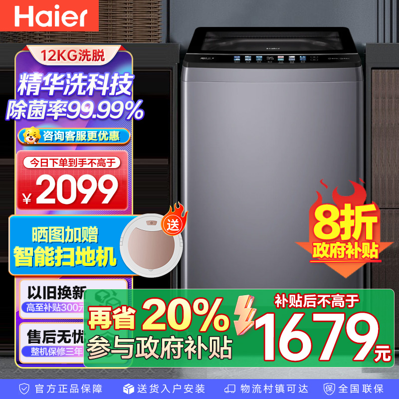 海尔(Haier) 12公斤 变频 全自动 波轮洗衣机 超净洗 除菌除螨 政府补贴 自编程 XQB120-BZ20L0