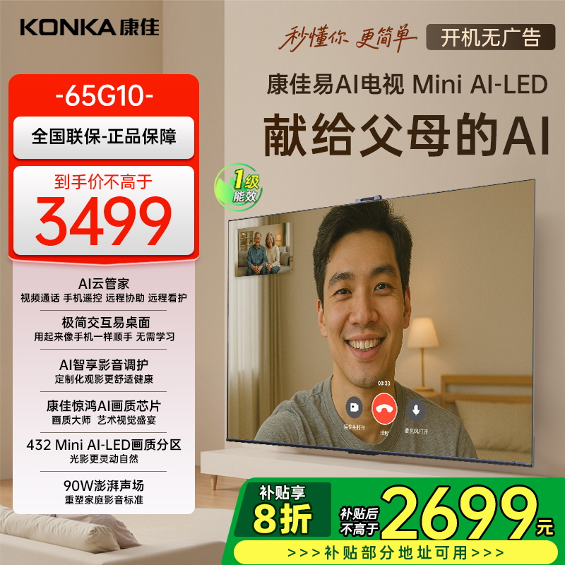 康佳电视65G10 65英寸 易AI电视机 惊鸿AI画质芯片 低反屏 Mini LED 多分区 液晶智能平板