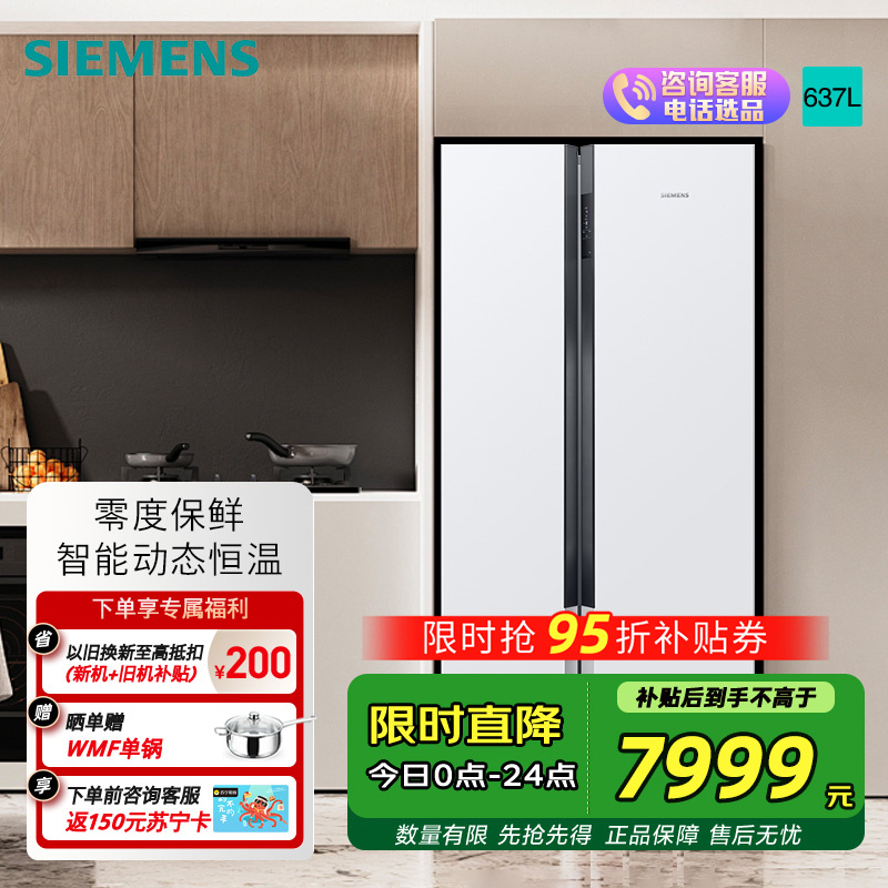 西门子637升大容量对开门精控恒鲜家用变频电冰箱 智能eNose杀菌净味 玻璃面板 支持国家补贴 KA99VA450C