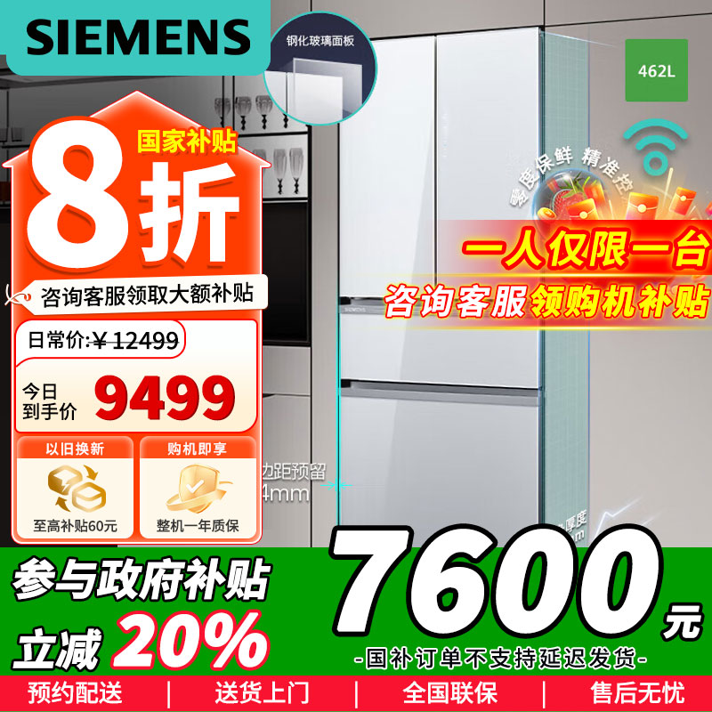 [官方正品]西门子462升全域精准恒鲜零度抗菌净味嵌入低噪一级能效变频节能多门冰箱 KF72FVA20C以旧换新