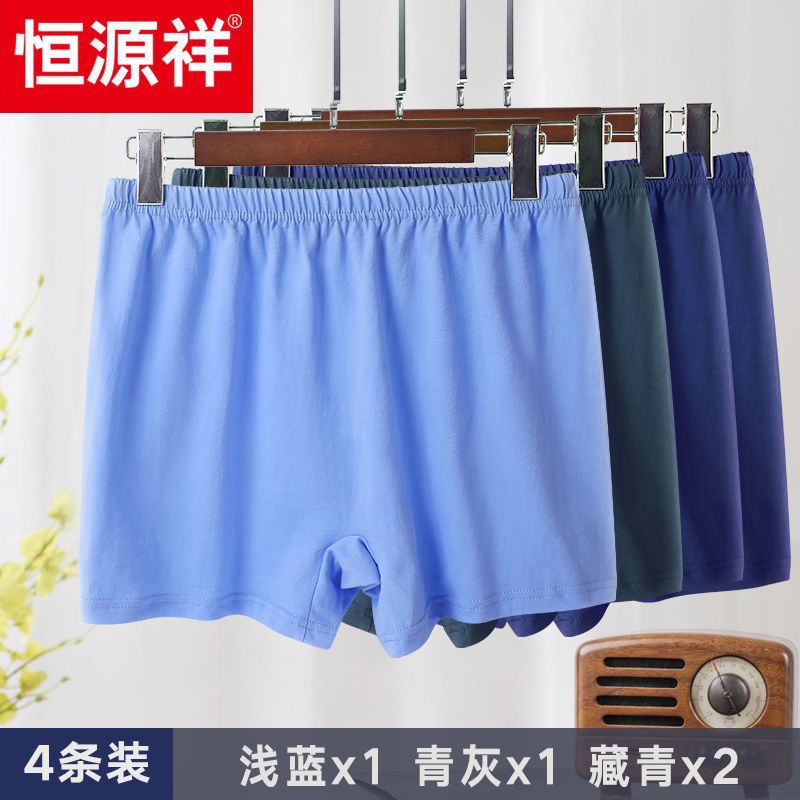 恒源祥中老年人内裤男士平角裤纯棉宽松棉短裤爸爸爷爷加大码 3XL 组合4-浅蓝青灰2藏青