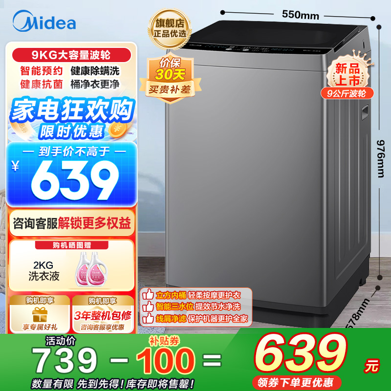 美的(Midea)波轮洗衣机全自动 9公斤大容量全空间抗菌健康除螨洗一级能效 MB90V33B