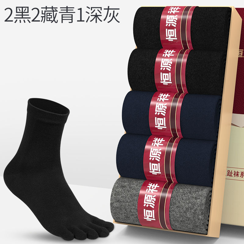 恒源祥五指袜男士纯棉中筒全棉防臭吸汗春秋四季分趾五趾袜子短袜_961 100%棉五趾袜短筒(38-44码) 2黑2藏青1深灰