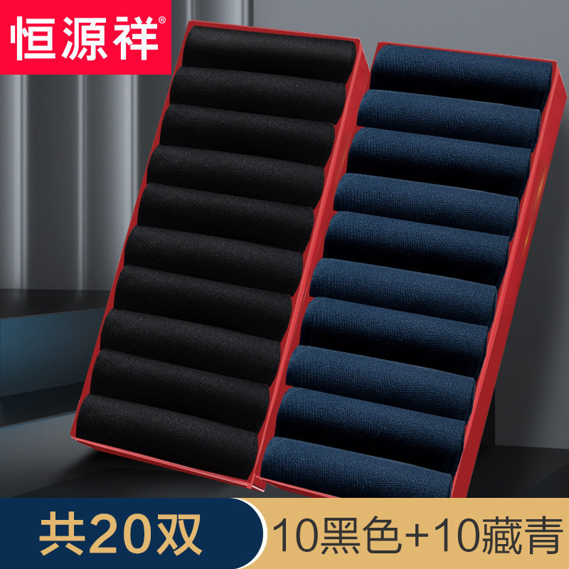 恒源祥袜子男士丝袜夏季冰丝超薄中筒吸汗透气男正装黑色短袜_697 均码 10双黑色+10双藏青(袋装)