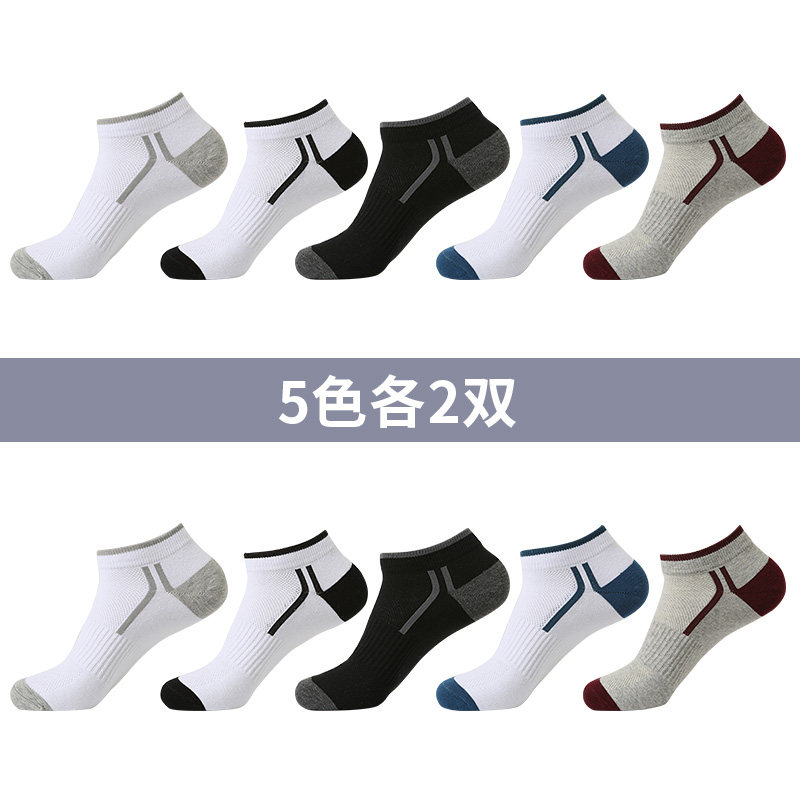 恒源祥袜子男纯棉运动袜防臭吸汗跑步低帮全棉薄款短袜黑色篮球潮 均码 五色各2