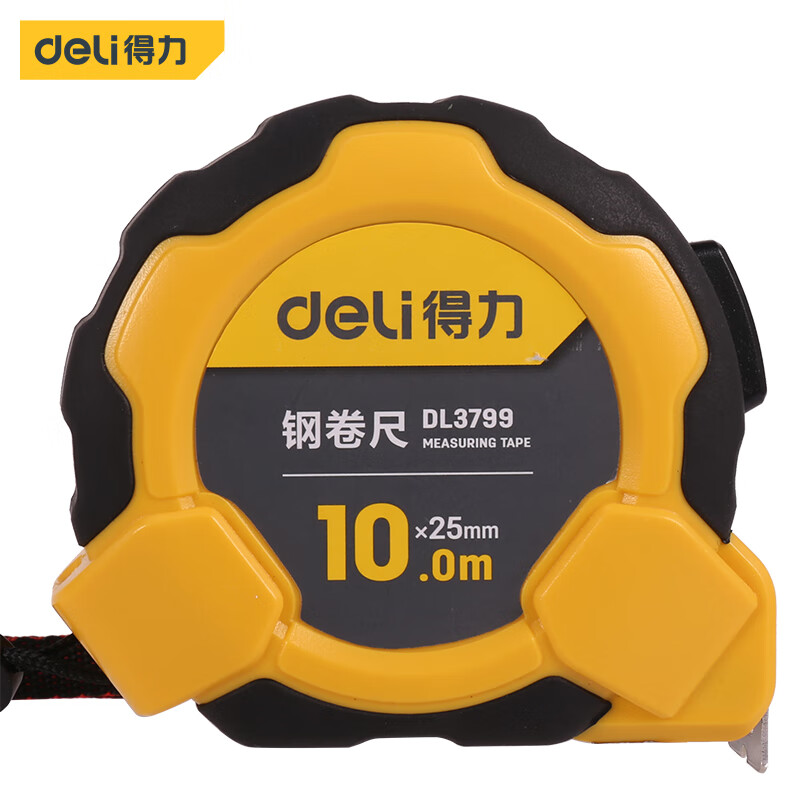得力(deli)DL3799钢卷尺 盒尺伸缩尺米尺公制 橡塑钢卷尺10mx25mm 1把
