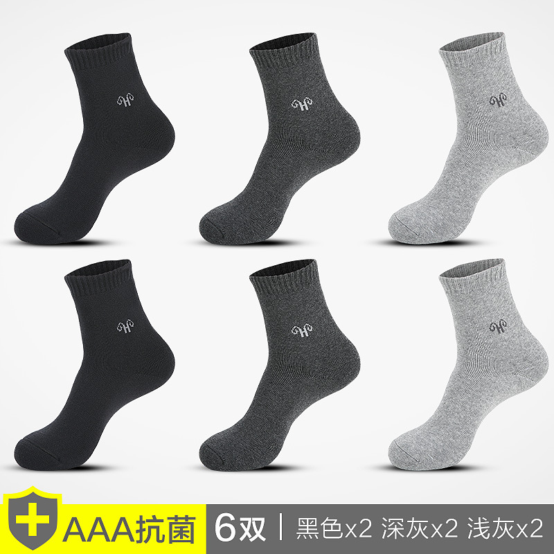 恒源祥袜子男冬季纯棉加厚棉袜中筒保暖毛袜秋冬款长筒加绒毛圈袜_147 均码(39-44码) 2黑色2深灰2浅灰