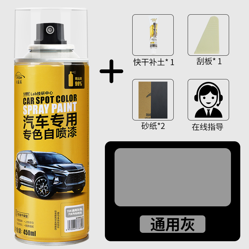汽车漆自动喷漆手摇专用补漆笔珍珠白色划痕修复修补黑车漆面神器 【通用灰】单瓶装-送全套工具