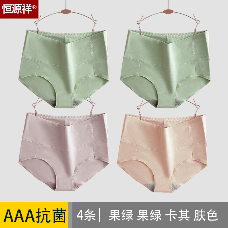 恒源祥内裤女纯棉高腰收腹女士石墨烯裆大码三角短裤头棉夏 M 高腰抗菌(果绿果绿卡其肤色)