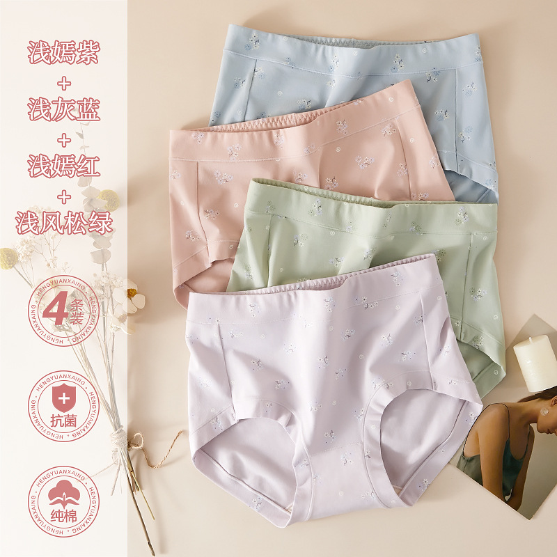 恒源祥内裤女士纯棉高腰收腹提臀收小肚子夏季薄款女生短裤头 170/XL 浅嫣紫+浅灰蓝+浅嫣红+钱风松绿