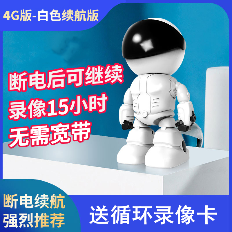 机器人无线摄像头连手机远程360度全景家用高清夜视无死角监控器 4G流量卡版白色+断电续航