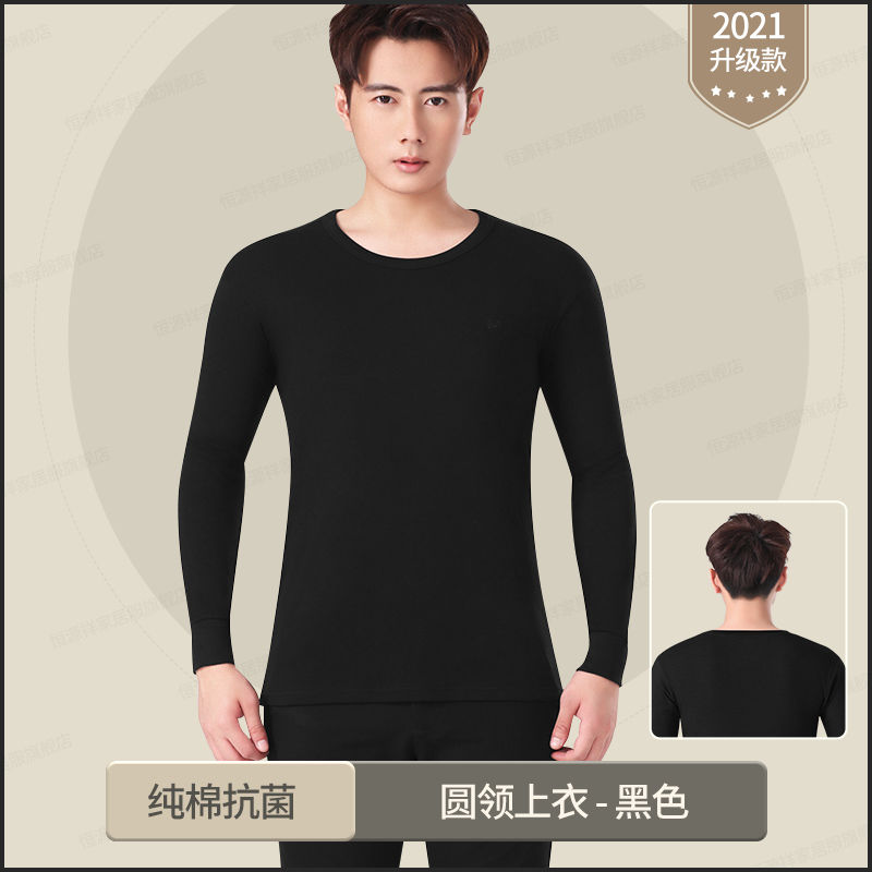 恒源祥男士秋衣纯棉毛衫薄款单件上衣全棉薄款打底保暖内衣秋冬季_735 190/4XL 上衣GMYHS圆领黑色