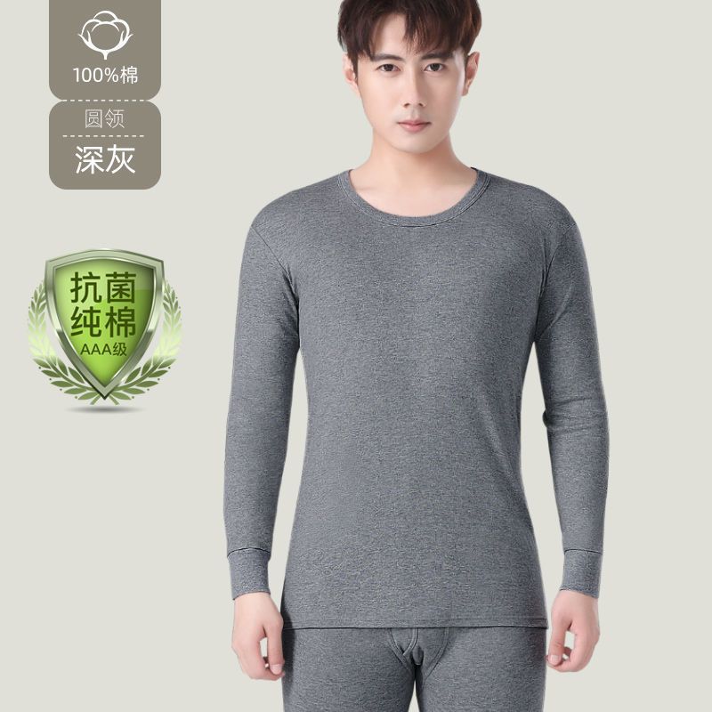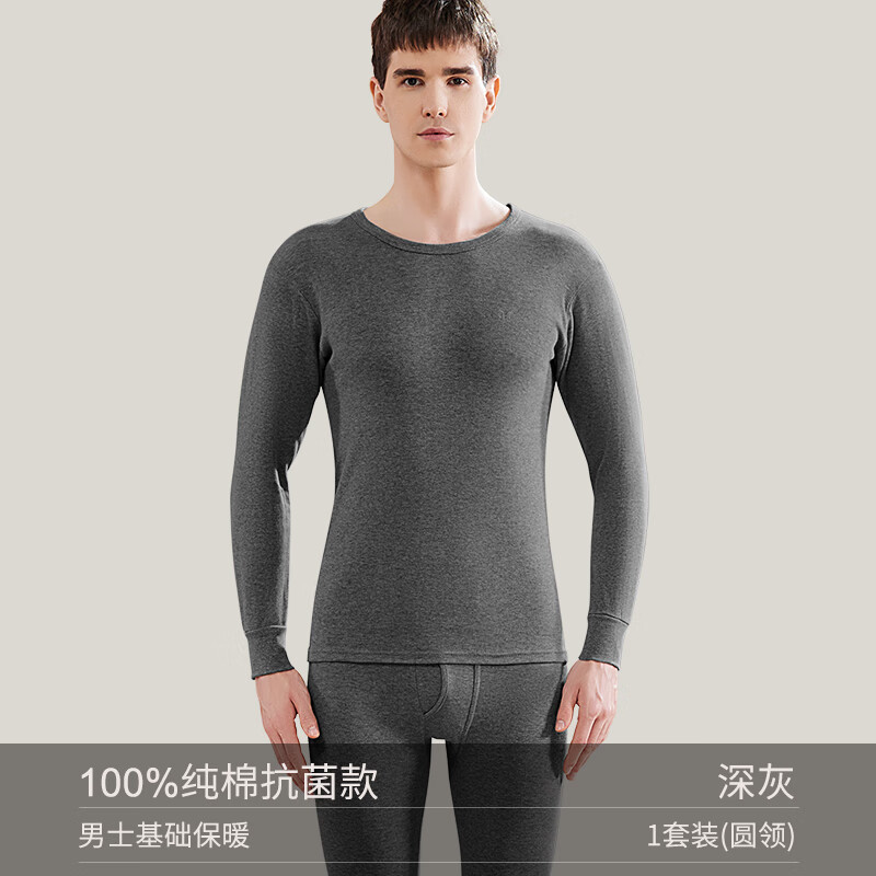 恒源祥保暖内衣女士纯棉毛衫薄款棉打底衫秋衣秋男裤套装秋冬季_796_92 180/2XL 【圆领男款】深灰