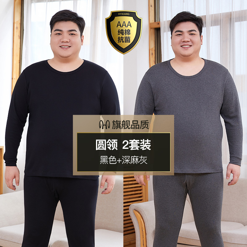 恒源祥内衣男士加大码纯棉秋衣秋裤保暖套装冬季薄款打底线衫_794 4XL(190/115) 黑色+深灰【加大码纯棉抗菌2套】