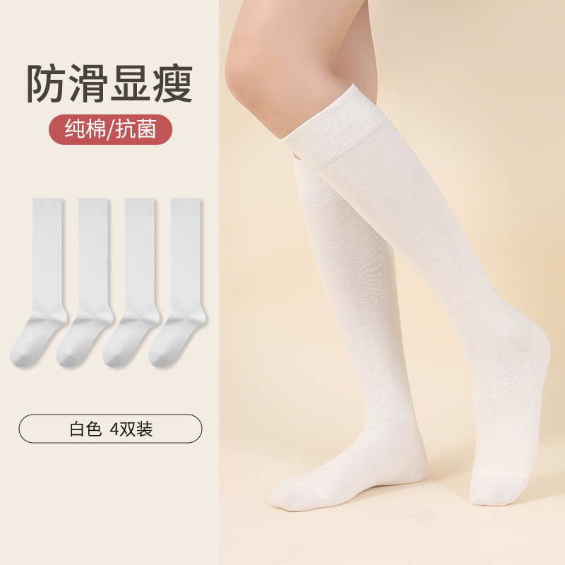 恒源祥袜子女高筒纯棉四季款小腿袜纯色简约女学生长袜潮_667 均码【35-39码】 【纯棉抗菌小腿袜】4白