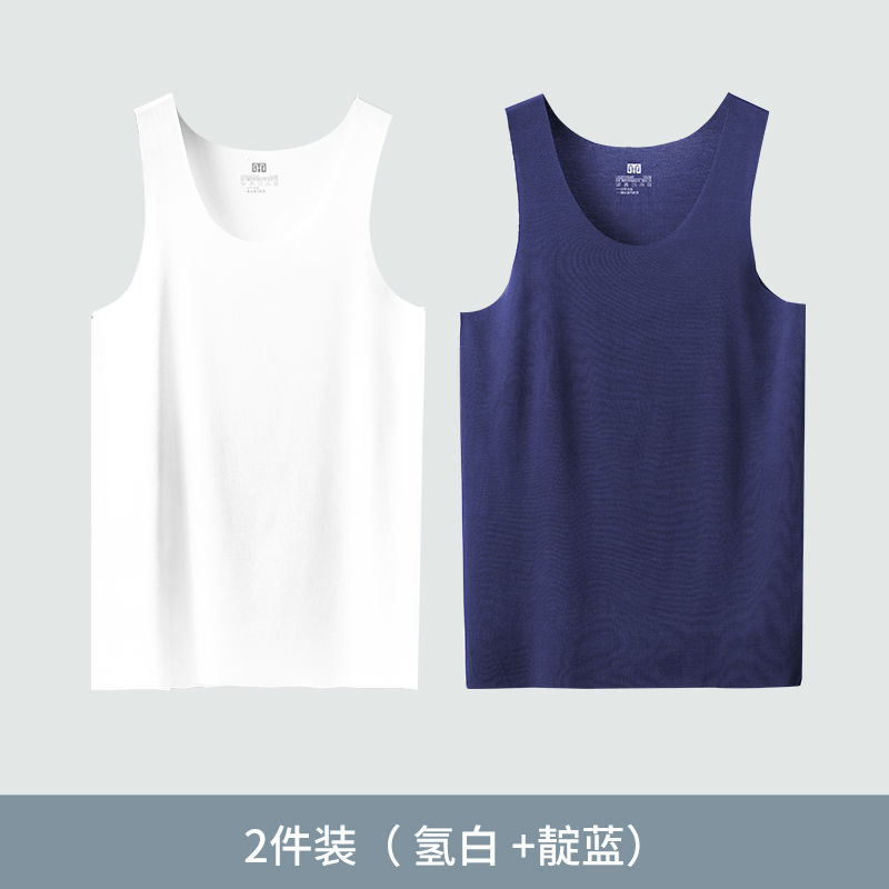 恒源祥背心男士夏季薄款透气冰丝无痕内穿打底汗衫运动跨栏无袖潮 170/L 【2件】冰丝无痕背心【白/蓝】