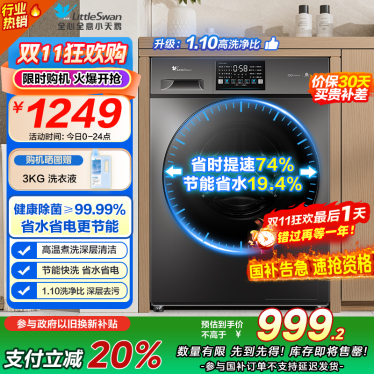 [苏宁自营]小天鹅滚筒洗衣机全自动变频10公斤大容量家用羽绒服洗除菌除螨 [洗净比1.1新款]