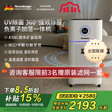 诺森柏格(Nocenbeger)空气净化加湿净化一体机除甲醛UV除菌除二手烟异味负离子深度净化净化器D7Pro