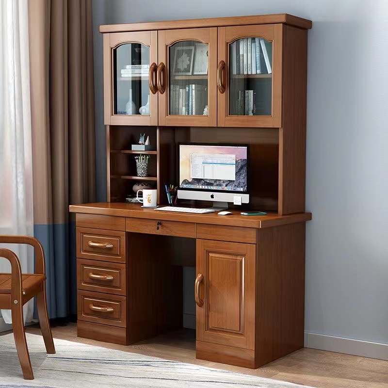 青木川 实木书桌带书架书柜一体卧室书房房间家用小户型0.8米1.4米办公桌电脑桌台式中学生学习写字桌书画桌简约现代 胡桃色【120x60x190cm】