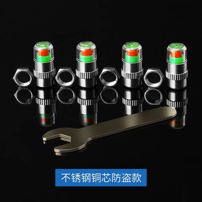 [补贴10%]汽车轮胎气嘴帽胎压监测帽气压检测警示预警冒气嘴帽用品大全 [不锈钢款+铜芯]4只装+防盗螺丝4个+