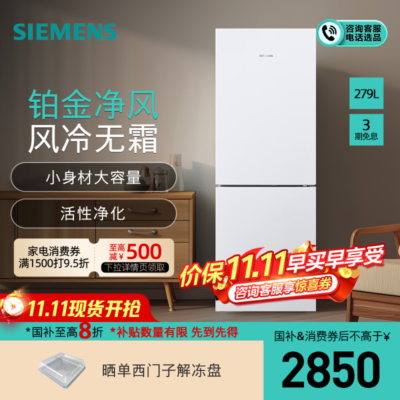 [新品]西门子279L双门家用大容量一级变频风冷无霜冰箱KG33NV120C
