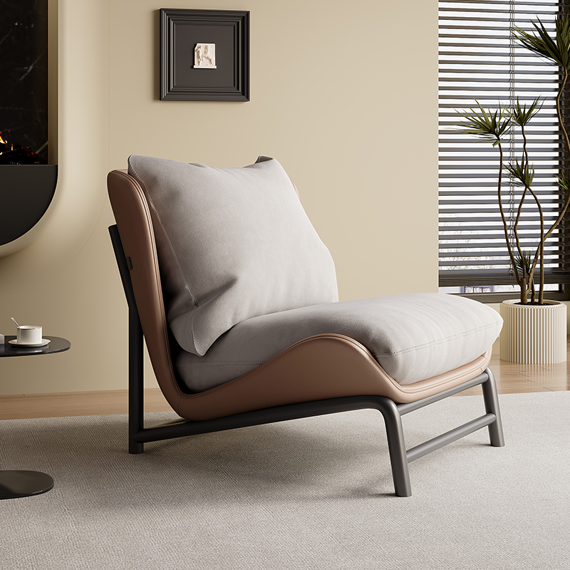 青木川 意式轻奢简约现代单人沙发椅可躺懒人客厅2024新款阳台书房办公沙发宿舍卧室小户型网红休闲椅子 咖色+灰色绒软包 单人椅+脚踏