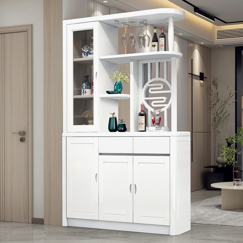 青木川 实木酒柜鞋柜一体靠墙双面客厅餐厅家用入户玄关柜隔断遮挡储物柜 白色 长宽高:110x40x190cm