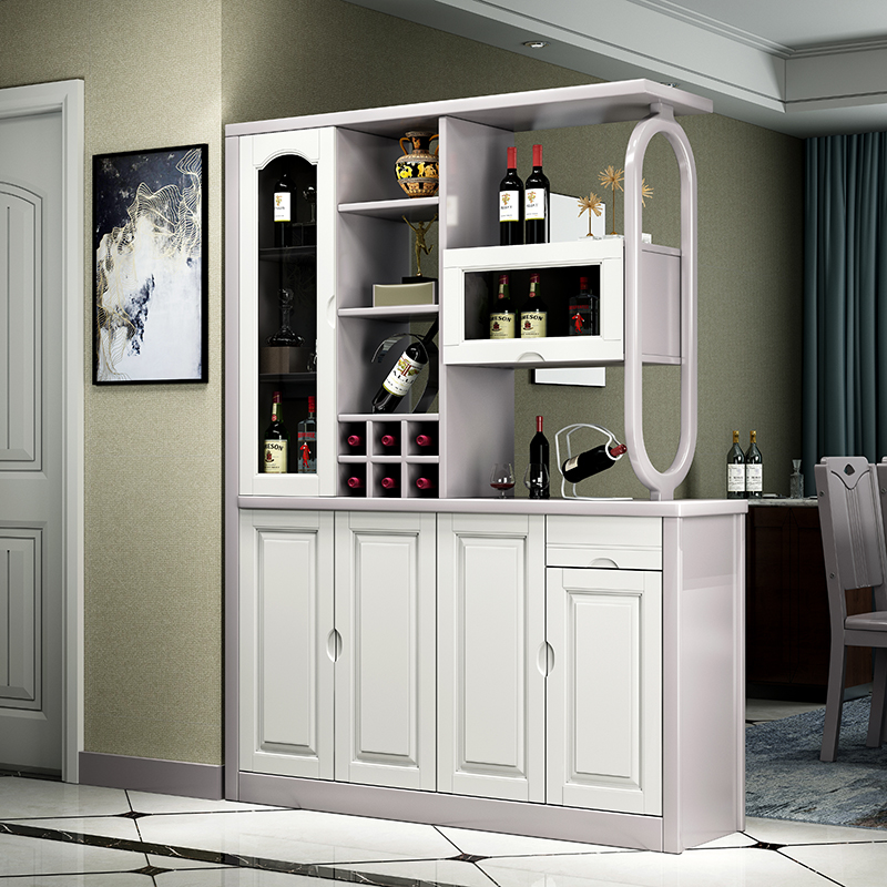 青木川实木酒柜鞋柜一体靠墙客厅家用入户进门口玄关隔断屏风柜双面高柜 四门灰白色【1.52米长】