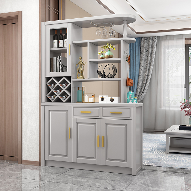 青木川 简约现代实木酒柜鞋柜一体靠墙厨房客厅饭厅进门口双面入户玄关柜隔断屏风柜装饰柜置物架展示柜门厅柜 三门【浅灰色】1.2米长