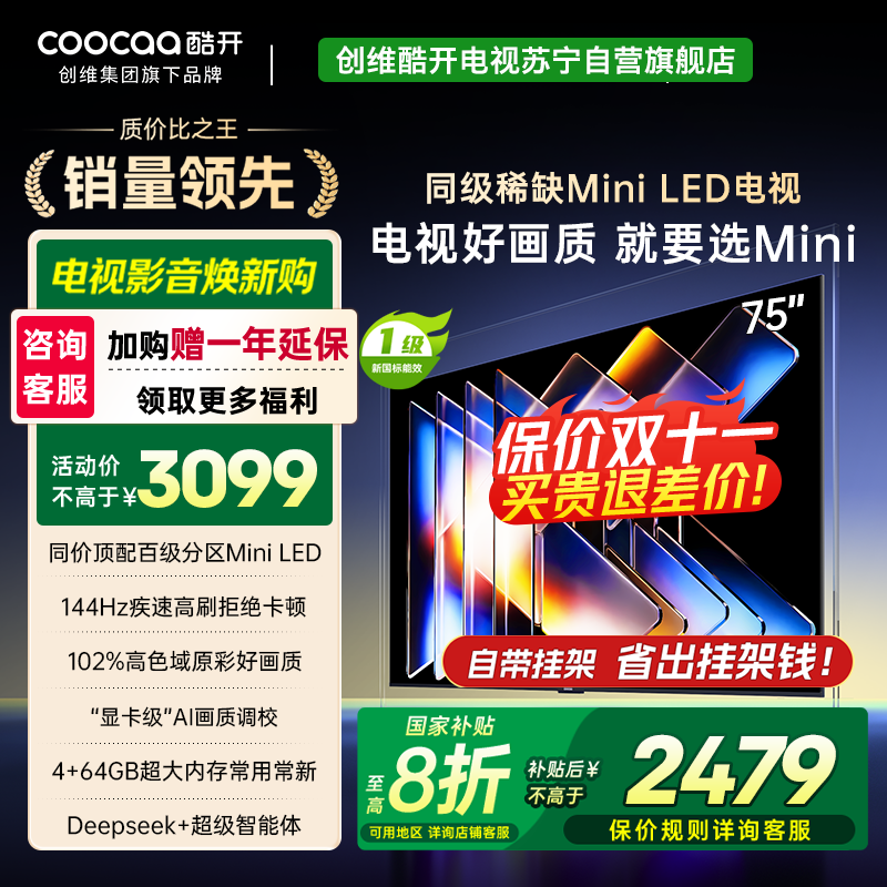 创维酷开电视65K6 2025款 AI MiniLED电视 智能电视 deepseek 一级能效 政府补贴