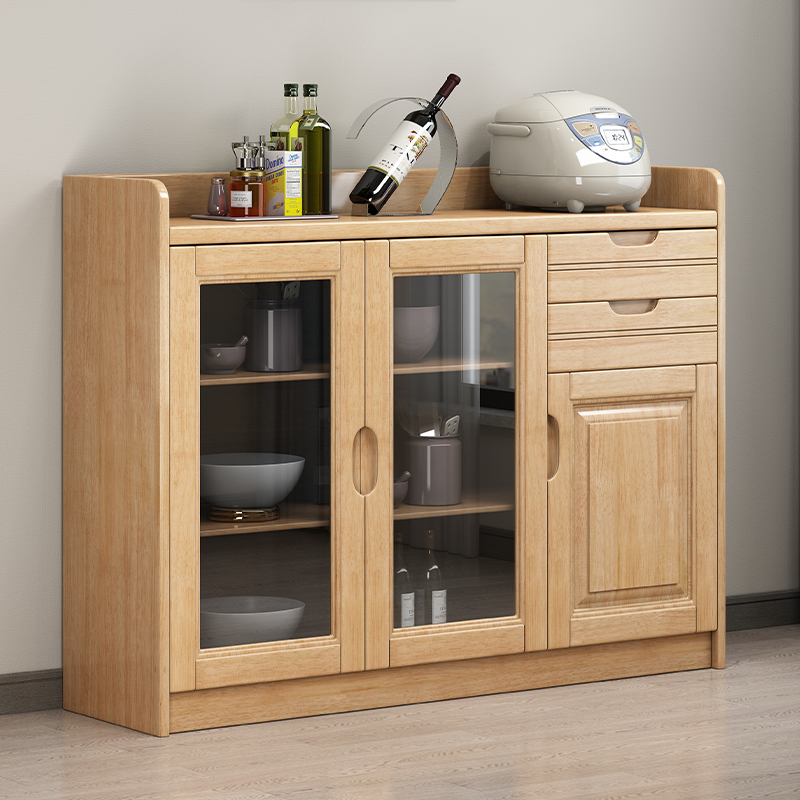 青木川 实木酒柜餐边柜一体靠墙客厅餐厅厨房碗柜两门三门1.6米收纳柜储物柜置物架备餐柜茶水柜矮柜灰白色简约现代轻奢 三门【榉木色】120x40x90cm