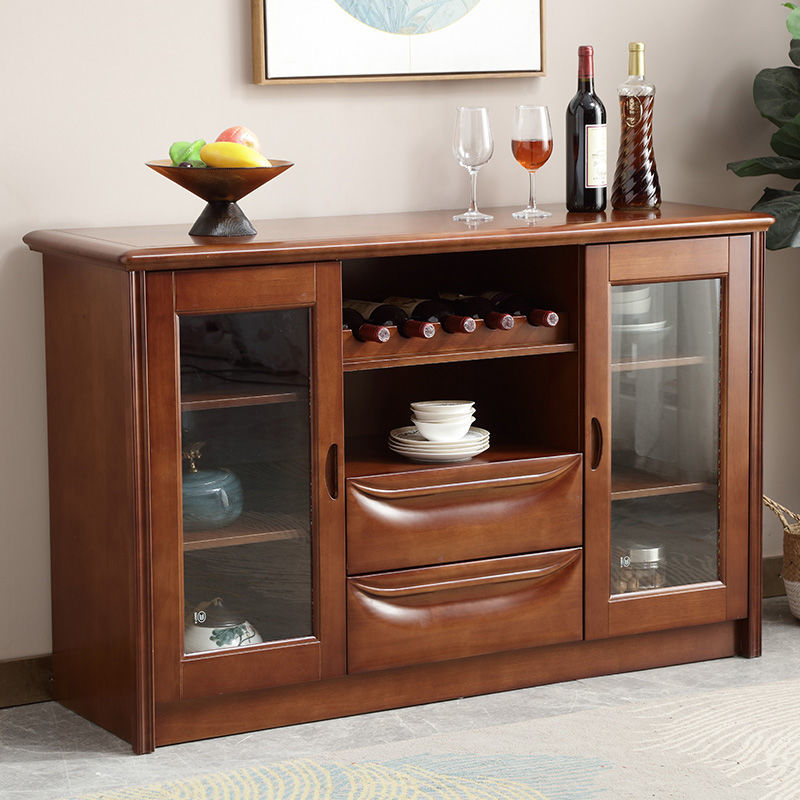 青木川 实木餐边柜酒柜一体靠墙矮柜高柜客厅餐厅家用小户型1.3米双门厨房置物架碗柜备餐柜茶水柜收纳储物柜 胡桃色【130x42x83cm】