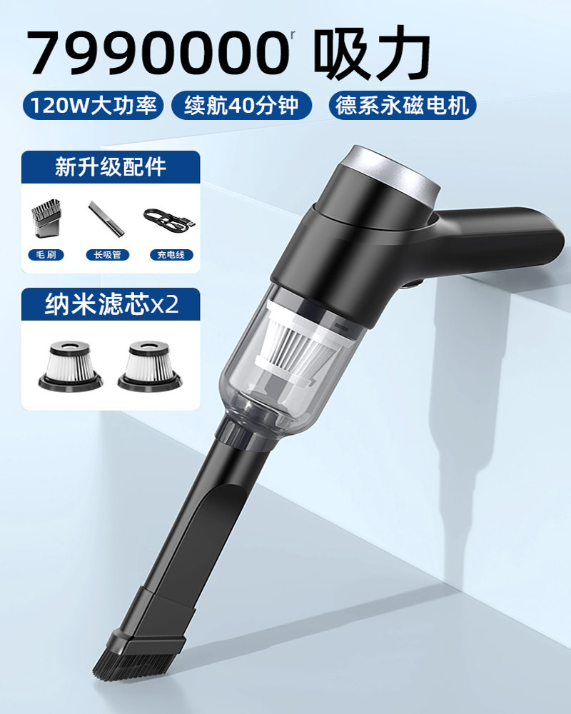 车载吸尘器车用无线充电汽车家用大吸力功率强力小型手持迷你车内 升级款【7990000r吸力】送纳米滤芯*2