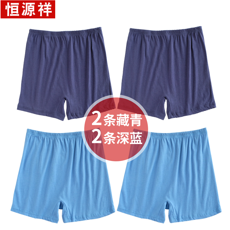 恒源祥纯棉男士内裤中老年人四角裤头爸爸加大码宽松全棉平角短裤 XXXXXL否 2藏青+2深蓝