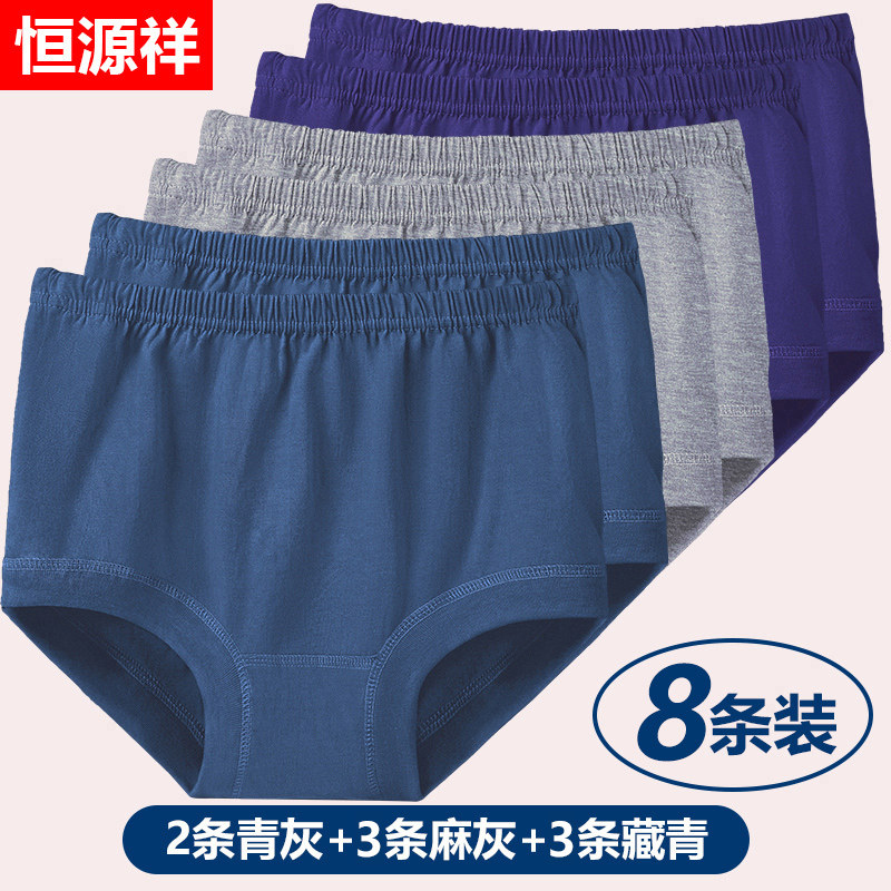 恒源祥中老年人男士内裤男三角裤纯棉宽松透气大码裤衩短裤头爸爸 185/3XL否 【8条】2条青灰+3条麻灰+3条藏青
