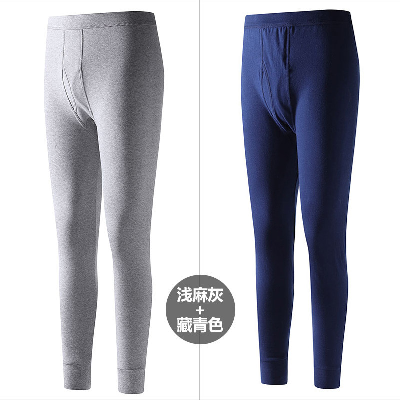 恒源祥男士纯棉秋裤保暖裤男青年薄款棉毛裤加肥加大码打底裤线裤 175(XL)否 藏青+浅灰