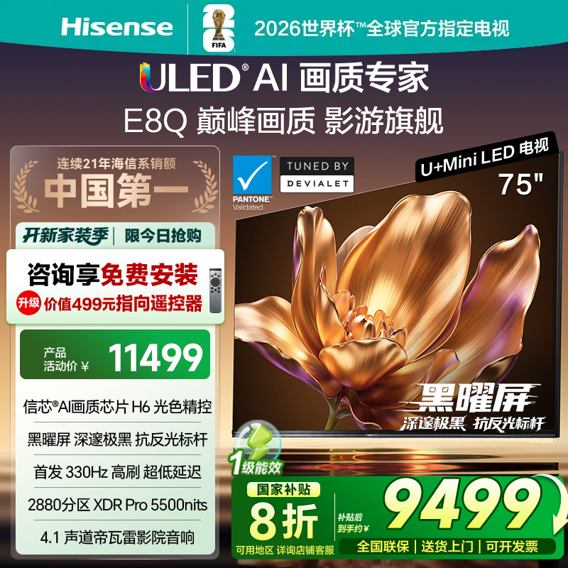 海信电视E8Q 75英寸 信芯H6 U+MiniLED 黑曜屏 330Hz高刷 帝瓦雷音响 E8NPRO升级