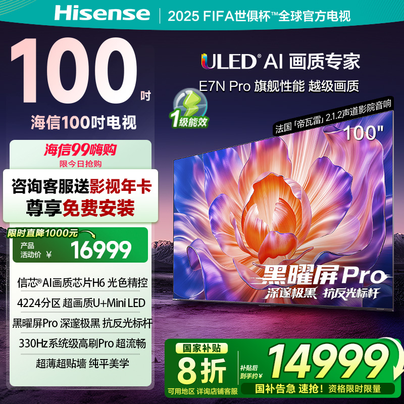 海信(Hisense)电视E7N Pro100英寸信芯芯片H6 U+Mini LED黑曜屏Pro 330Hz高刷