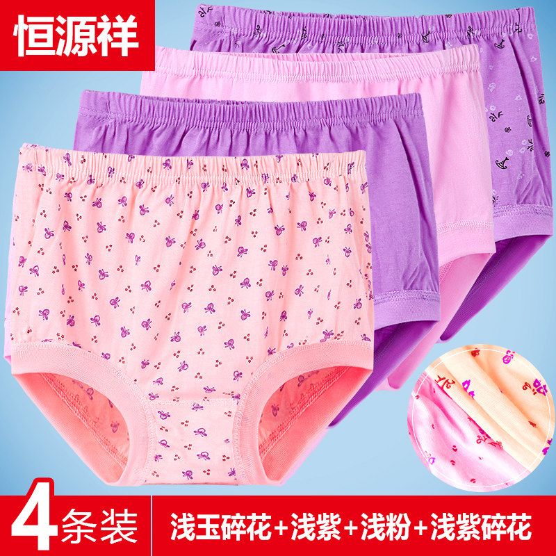 恒源祥妈妈内裤女士纯棉高腰大码中老年人棉宽松三角短裤头_862 2XL 【4条装】浅玉碎花_浅紫_浅粉_浅紫碎花.