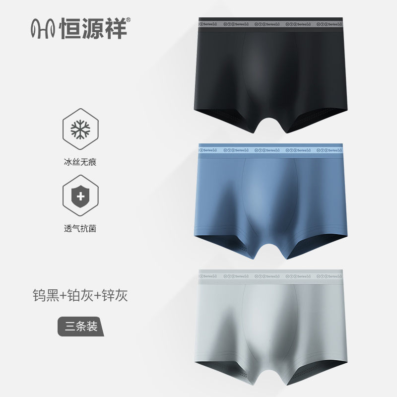 恒源祥男士内裤男冰丝无痕平角裤头四角裤头透男生潮流裤衩头 170/L 钨黑/铂灰/锌灰